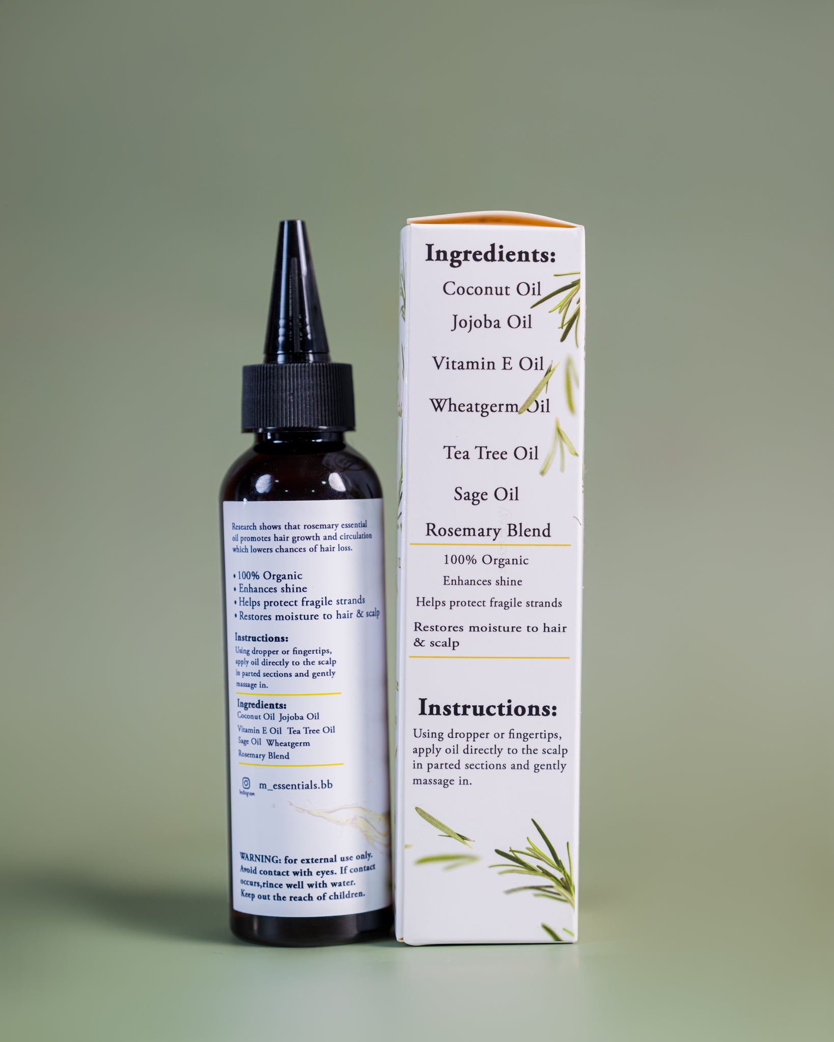 This nourishing hair oil blends Coconut, Jojoba, Vitamin E, Wheatgerm, Tea Tree and Sage oils and a Rosemary blend to hydrate, strengthen, and promote healthy hair growth. It helps balance the scalp, repair damage, and improve elasticity while providing antimicrobial benefits and a natural shine. The result is soft, revitalized hair with a fresh, invigorating scent.