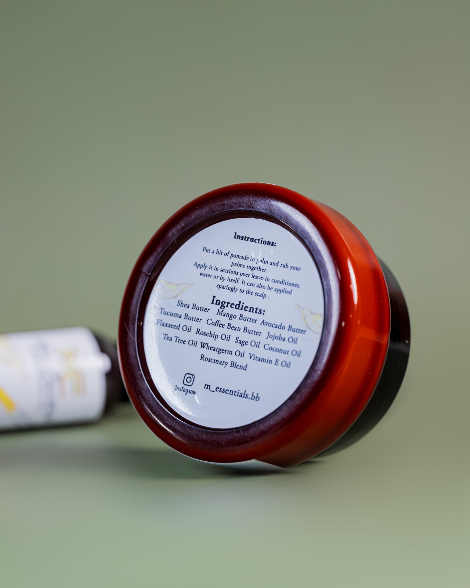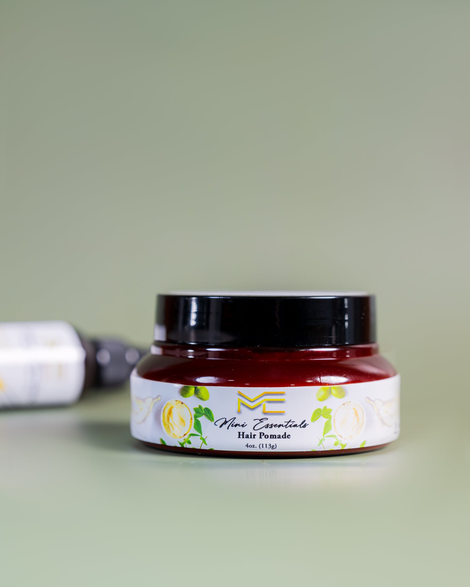 MiniEssentials' Hair pomade for the scalp is a lightweight, nourishing product designed to moisturize and soothe the scalp while providing light hold and shine. It helps reduce dryness, flakiness, and irritation, promoting a healthy scalp environment for hair growth.